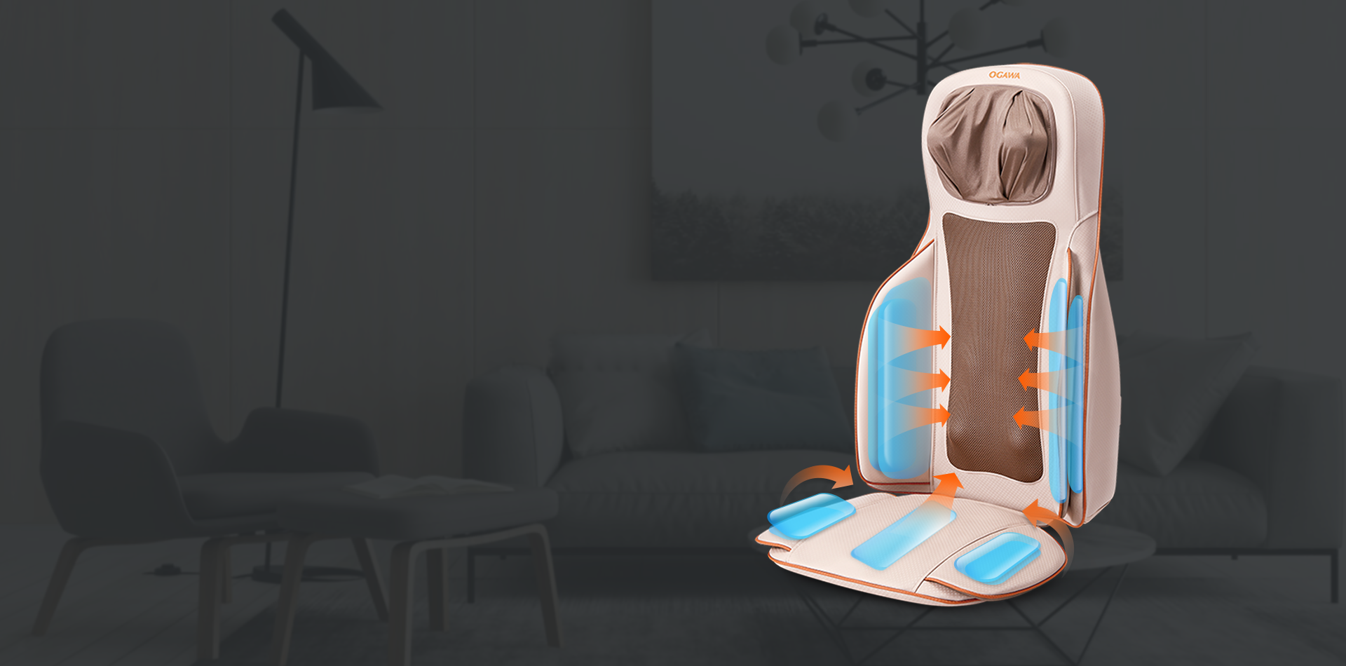腰部、臀部升级脉冲式气囊夹捏按摩,大力跃动,实现按摩的紧压感,深层放松肌肉